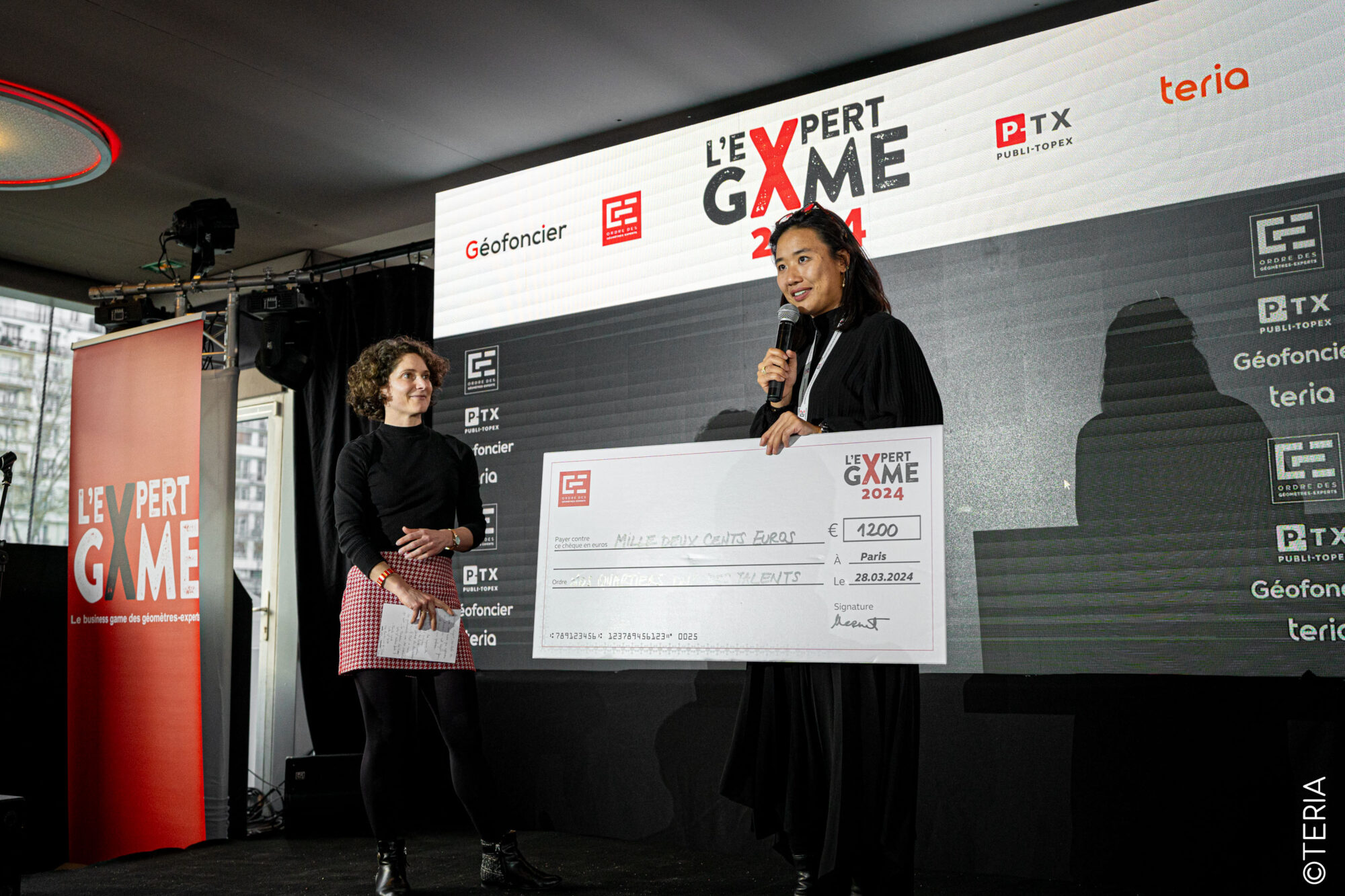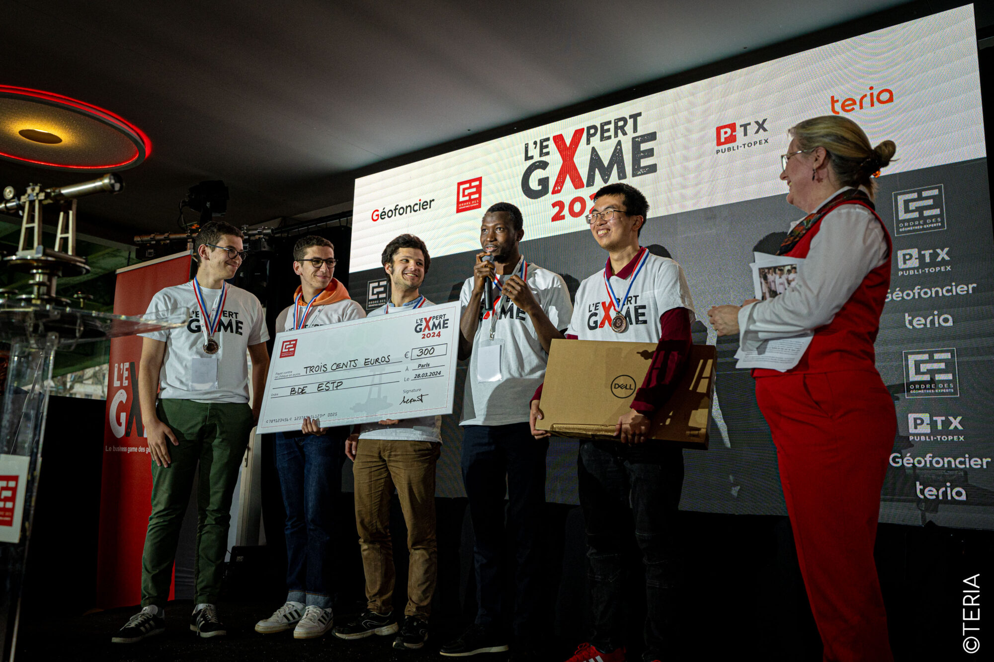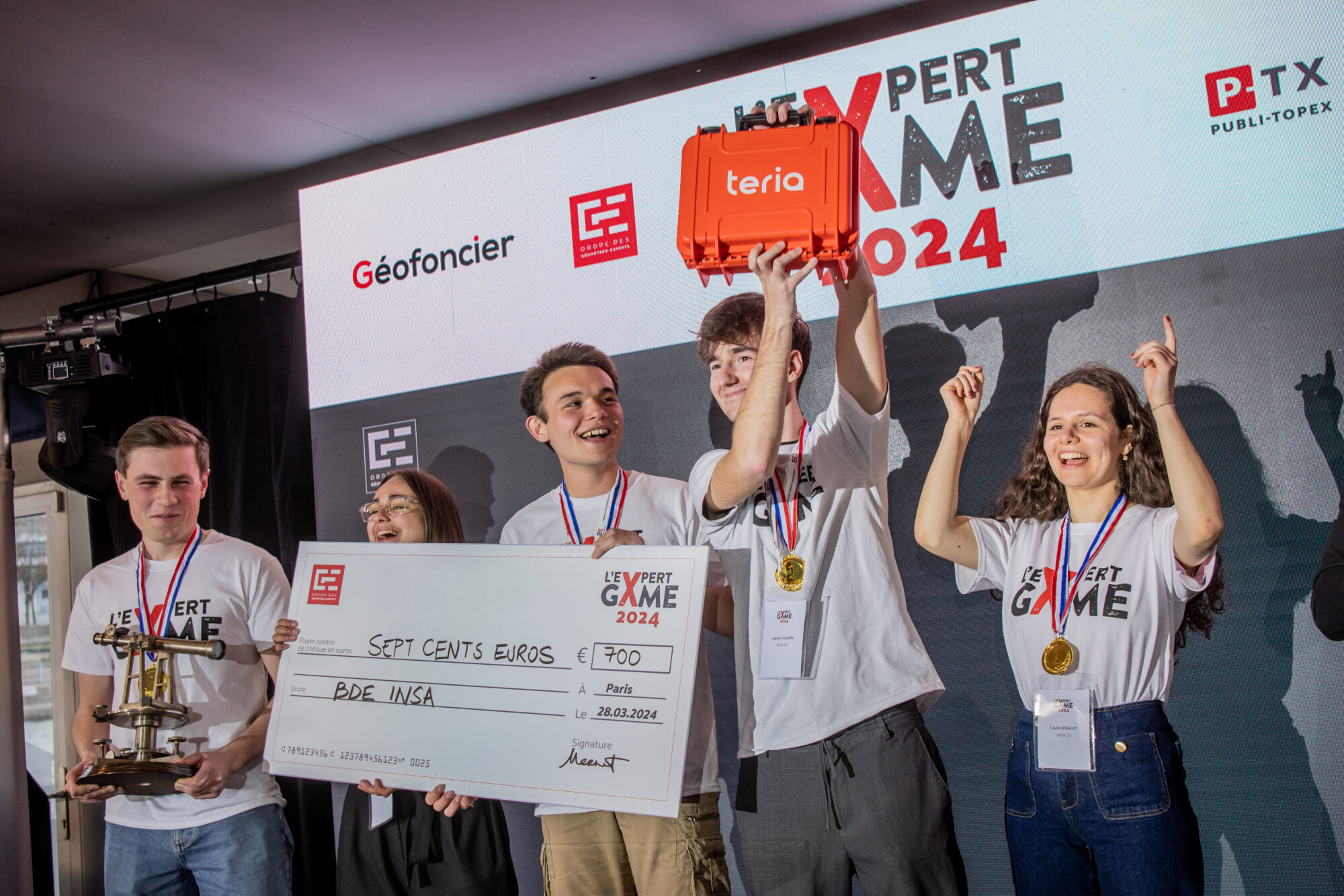 l’ESGT a remporté un ordinateur portable offert par Géofoncier. Le BDE a quant à lui reçu un chèque de 500€ de la part de Géofoncier et Publitopex.